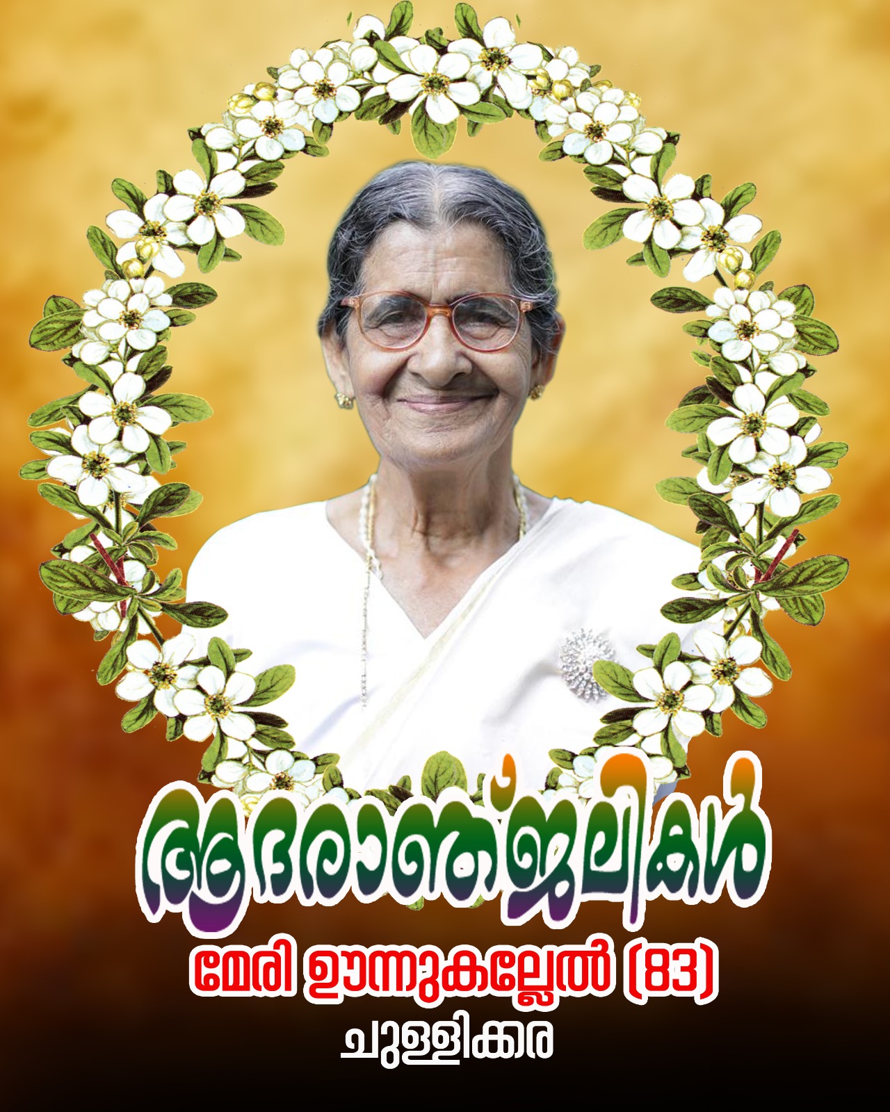 രാജപുരം : ചുള്ളിക്കരയിലെ ഊന്നുകല്ലേല് മേരി (83) നിര്യാതയായി. സംസ്കാരം 12ന് ഉച്ചകഴിഞ്ഞ് 4 മണിക്ക് ചുള്ളിക്കര സെന്റ് മേരീസ് പള്ളിയില് .ഭര്ത്താവ്: പരേതനായ ഊന്നുകല്ലേല് ജോസഫ്. മകന്: രാജു, മരുമകള്: മേരി പരപ്പനാട്ട് സഹോദരങ്ങള്: ഫിലിപ് മുളവനാല്, സിസ്റ്റര് ഹര്മീനിയ, സിസ്റ്റര് ലീല, ക്ലാര, മാത്യു, പരേതരായ ജോസഫ്,ഏലിയാമ്മ.