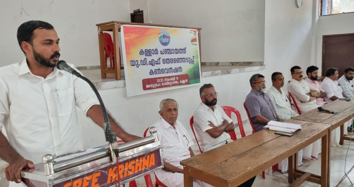രാജപുരം: കള്ളാര് പഞ്ചായത്ത് യു.ഡി. എഫ് തെരഞ്ഞെടുപ്പ് കണ്വെന്ഷന് കള്ളാര് അനുഗ്രഹ ഓഡിറ്റോറിയത്തില് നടന്നു. ഡി സി സി വൈസ് പ്രസിഡന്റ് ബി പി പ്രദീപ് കുമാര് ഉദ്ഘാടനം ചെയ്തു. യുഡി എഫ് ചെയര്മാന് ഇബ്രാഹിം ചെമ്മനാട് അധ്യക്ഷത വഹിച്ചു. യുഡി എഫ് കണ്വീനര് പി സി തോമസ്സ് , കൂക്കള് ബാലകൃഷ്ണന്, സക്കറിയ വടാന, എം കുഞ്ഞമ്പു നായര് അഞ്ഞനമുക്കൂട് ,